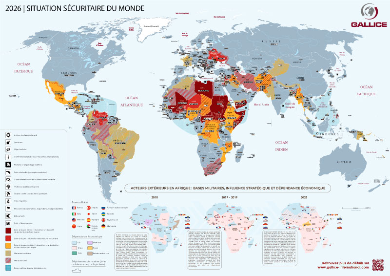 Depuis 2008, GALLICE est une référence reconnue en évaluation et gestion des risques, offrant une analyse approfondie et actualisée des zones sensibles. Pionniers dans le domaine, nous avons délibérément adopté une approche francophone et indépendante pour identifier les régions à surveiller et anticiper les enjeux géopolitiques et sécuritaires majeurs liés à vos projets et/ou déplacements